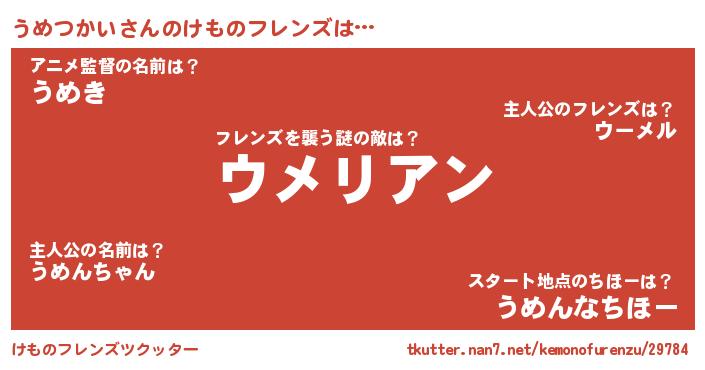 | ヒーロー風カッコイイあだ名 | 『愛の使者うめつかい』『天弓騎士ウメ』 |