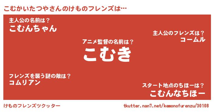 | 萌えアニメ | 主人公(こむかいたつや)のあだ名『こむくん』 |