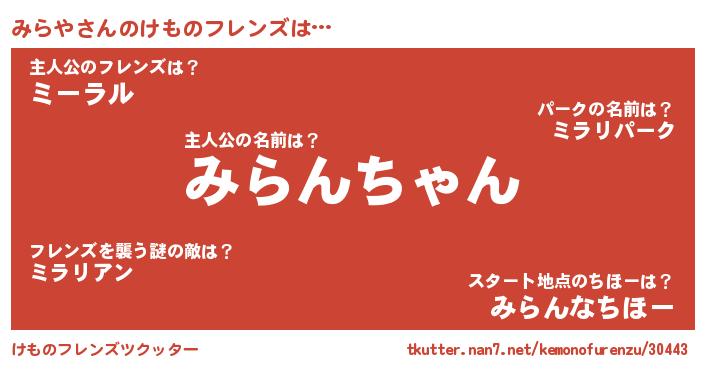 | 男性向けラノベタイトル風あだ名 | 『この素晴らしい世界にみらやを!』 |