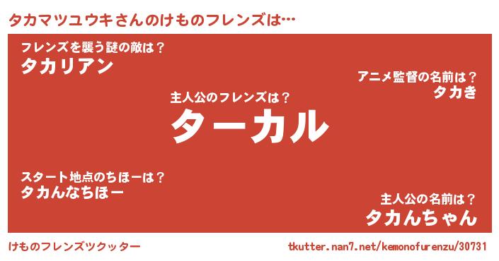| ファンタジー風あだ名 | 『ユリタカヴァット』『タカディッシュ』 |