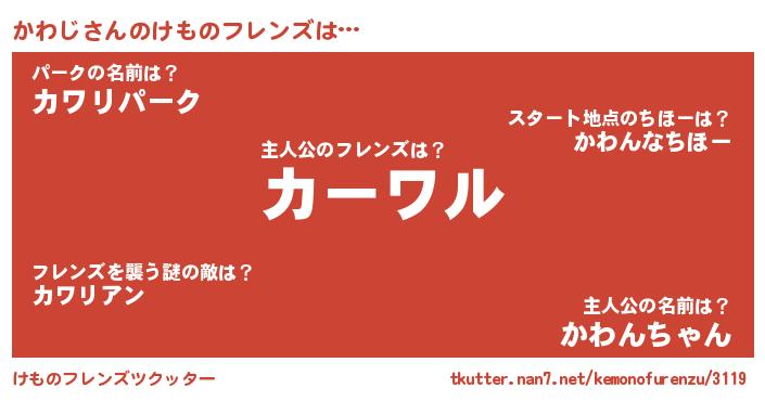 | ファンタジー風あだ名 | 『カワディッシュ』『ゼカワトゥ』 |