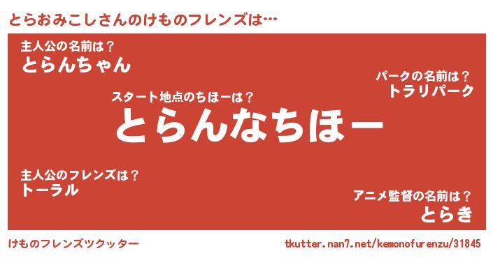 | 2回繰り返すあだ名 | 『ととらら』『とらとら』『ねとねと』 |
