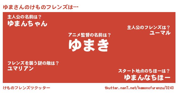 | 2回繰り返すあだ名 | 『うねうね』『どろどろ』『ゆまゆま』 |