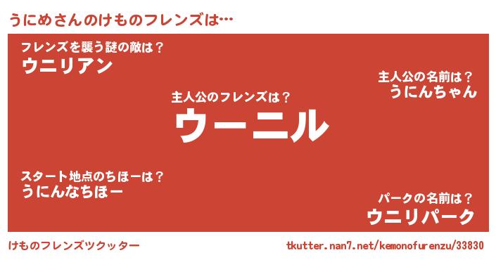 | 男性向けラノベタイトル風あだ名 | 『うにめという概念が存在しない退屈な世界 』 |