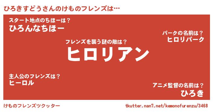 | 男性向けラノベタイトル風あだ名 | 『おまえをオタクにしてやるから、俺をひろきすどうにしてくれ! 』 |