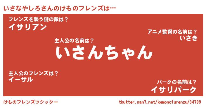 | ヒーロー風カッコイイあだ名 | 『スーパーイサナヤシロ』『銀牙騎士イサ』 |