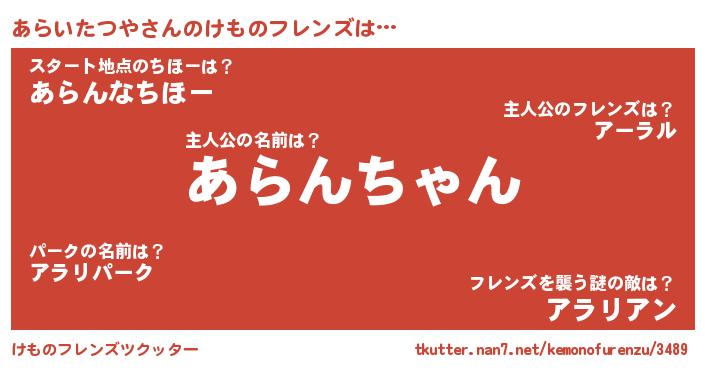 | 肩書あだ名 | 『あらいたつや中将』『あらいたつやCEO』 |