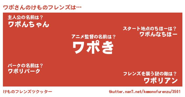 | 女子向けラノベタイトル風あだ名 | 『ワポ様がみてる』『ワポ姫と円卓の騎士』 |