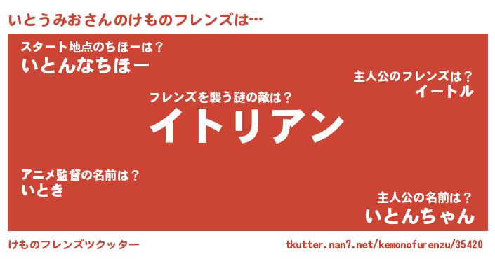| 男性向けラノベタイトル風あだ名 | 『おまえをオタクにしてやるから、俺をいとうみおにしてくれ! 』 |