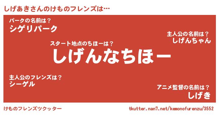 | 意味不明あだ名 | 『住所不定無職しげあき(77歳)』 |