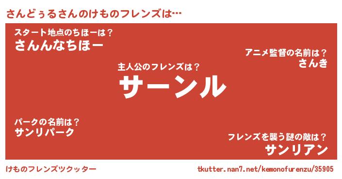 | 男性向けラノベタイトル風あだ名 | 『さんどぅるという概念が存在しない退屈な世界 』 |