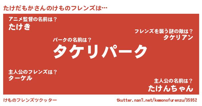 | 男性向けラノベタイトル風あだ名 | 『この素晴らしい世界にたけだもかを!』 |