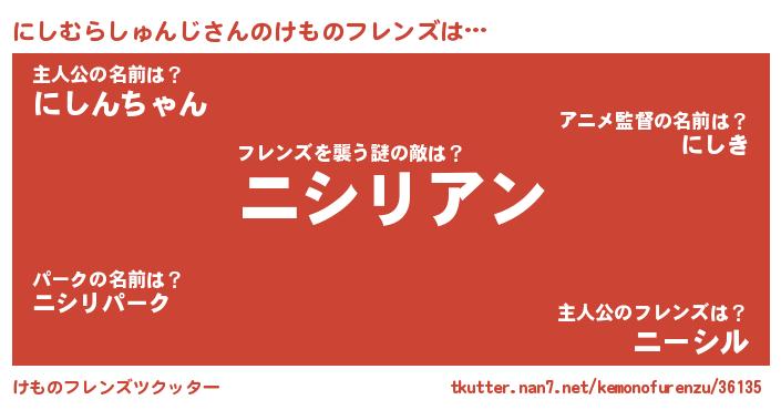 | 肩書あだ名 | 『にしむらしゅんじ上級大将』 |