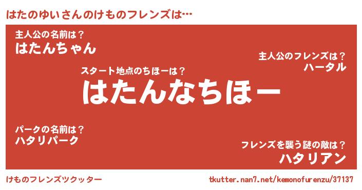 | ファンタジー風あだ名 | 『エターナルハタノユイー』『ハタフェル』 |