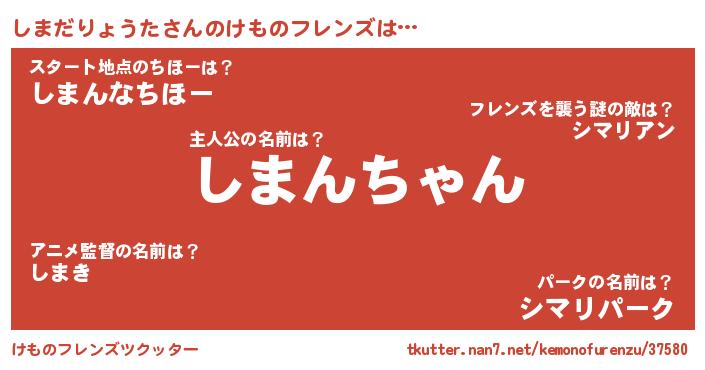 | 2回繰り返すあだ名 | 『しゅーしゅー』『しましま』 |