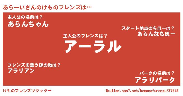 | ファンタジー風あだ名 | 『アラディッシュ』『カークアララー』 |