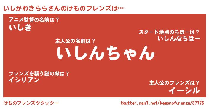 | ポケモン風あだ名 | 『イシチュウ』『ヒイシカワキララ』 |