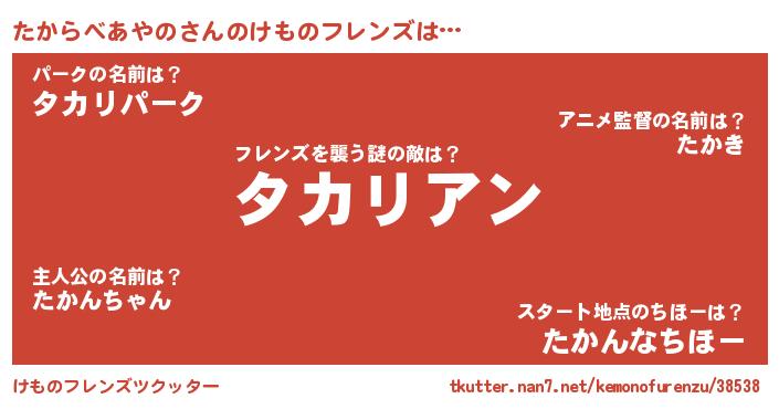 | ヒーロー風カッコイイあだ名 | 『慈愛の使者たからべあやの』 |