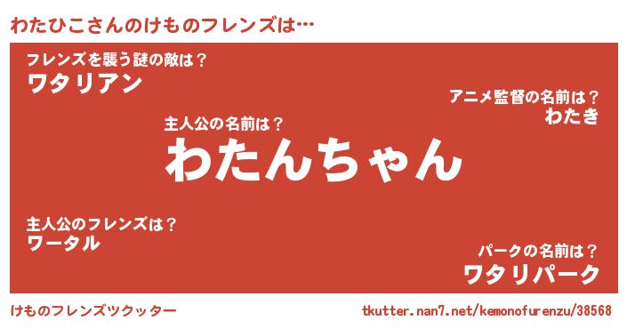 | 意味不明あだ名 | 『ペロリンわたひこ』『自称わたひこ』 |