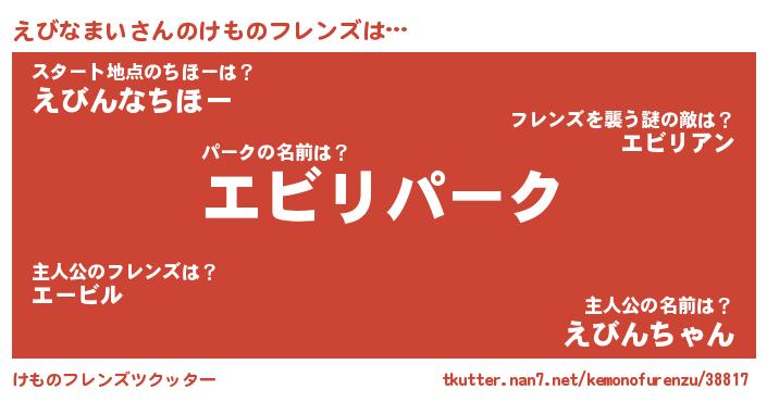 | ファンタジー風あだ名 | 『ゼエビトゥ』『エターナルエビナマイー』 |