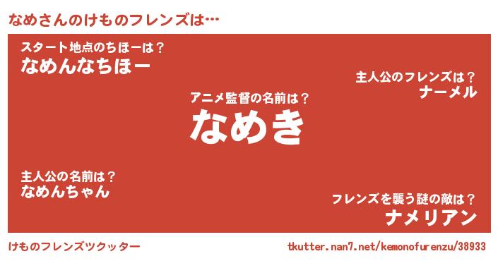 | ポケモン風あだ名 | 『ナメキング』『ヒナメ』『ナメダネ』 |