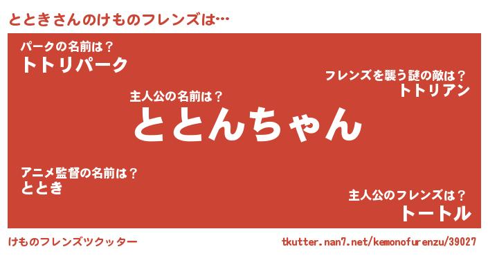 | ヒーロー風カッコイイあだ名 | 『スーパートトキ』『究極戦士トトキ』 |