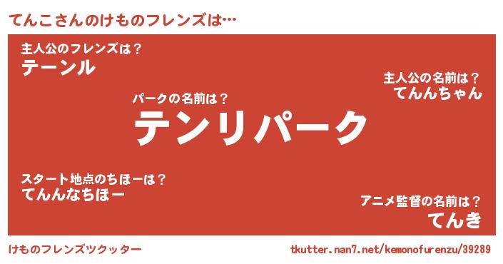 | 意味不明あだ名 | 『自称てんこ』『永久保存てんこ』 |