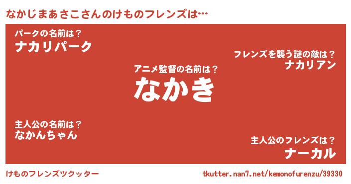 | ポケモン風あだ名 | 『ヒナカジマアサコ』『ナカセウス』 |
