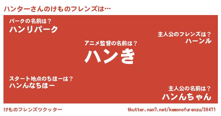 | 恥ずかしいあだ名 | 『ハンリンリン』『ハンターデラックス』 |