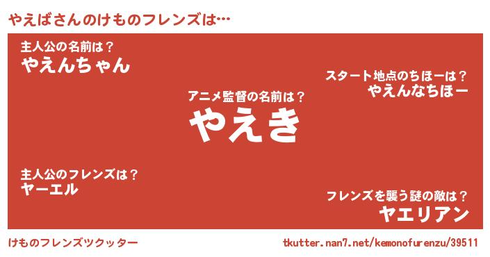 | ピコ太郎風あだ名 | 『ヤエ太郎』『ヤコ二郎』『ヤヤ太郎』 |