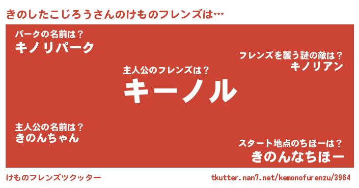 | ヒーロー風カッコイイあだ名 | 『ネオキノシタコジロウ』『仮面キノダー』 |
