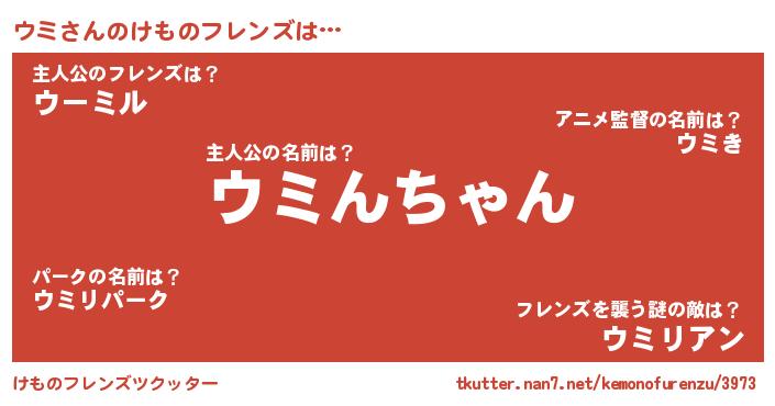 | ヘコむあだ名 | 『ウミもー』『ウミ(笑)』『ウミを』 |
