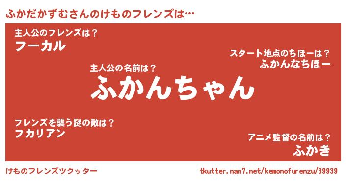 | 男性向けラノベタイトル風あだ名 | 『ふかだかずむ~年齢イコール彼女いない歴の魔法使い~』 |