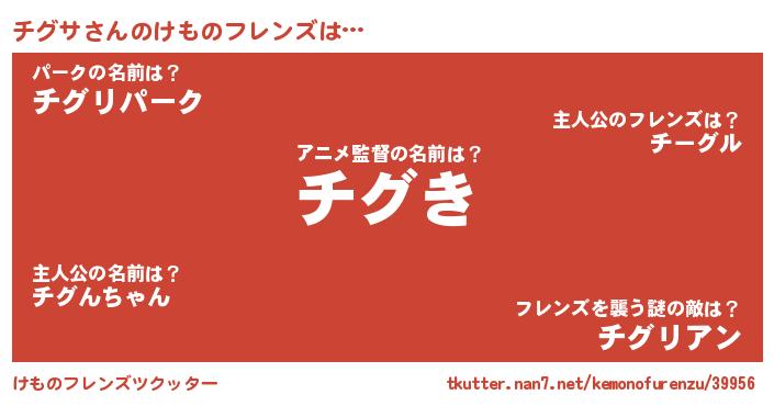 | 意味不明あだ名 | 『とにかく怪しいチグサ』『自称チグサ』 |