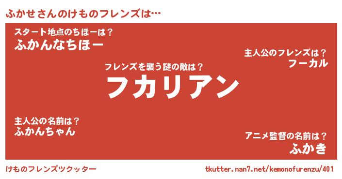 | 肩書あだ名 | 『ふかせ教授』『ふかせ総理大臣』 |