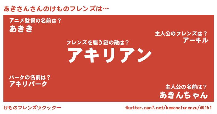 | ヒーロー風カッコイイあだ名 | 『友情の使者あきさん』『幻影騎士アキ』 |
