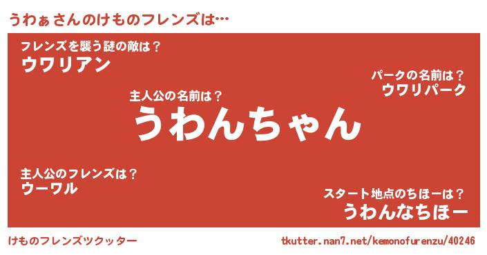 | ヒーロー風カッコイイあだ名 | 『スーパーウワァ』『天空の使者うわぁ』 |