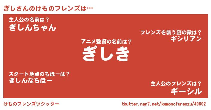 | ピコ太郎風あだ名 | 『ギシ次郎』『ギコ二郎』『ピコギ郎』 |