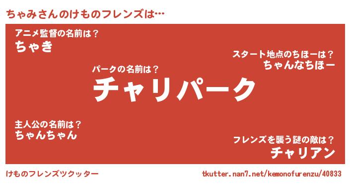 | 意味不明あだ名 | 『自称ちゃみ』『たけのこ科ちゃみ属』 |