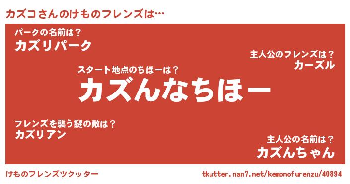 | 2回繰り返すあだ名 | 『カカズズ』『もやもや』『カズカズ』 |