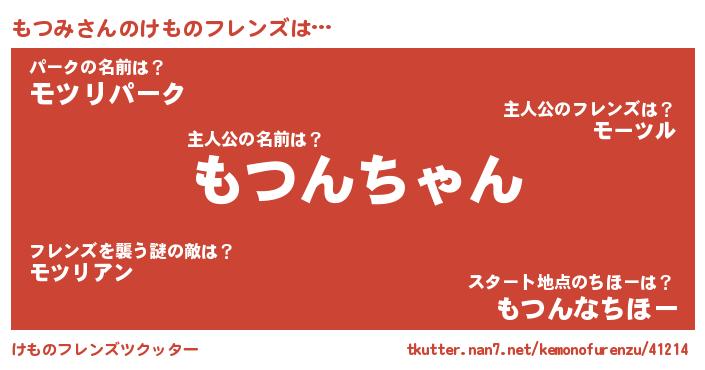 | ヒーロー風カッコイイあだ名 | 『スーパーモツミ』『超時空戦士モツミ』 |