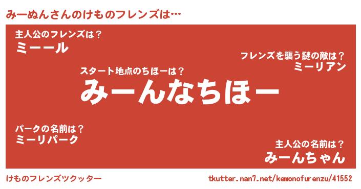 | ファンタジー風あだ名 | 『エターナルミーヌンー』『ミーフェル』 |
