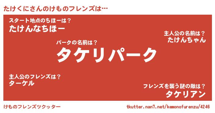 | ファンタジー風あだ名 | 『ゼタケトゥ』『エターナルタケクニー』 |