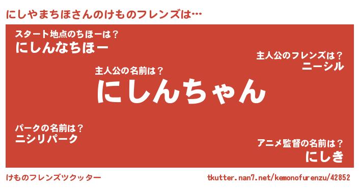 | 2回繰り返すあだ名 | 『にしにし』『ににしし』『むにむに』 |