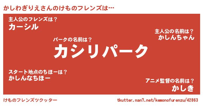 | ヒーロー風カッコイイあだ名 | 『仮面カシダー』『究極戦士カシワギリエ』 |