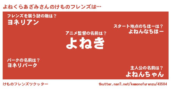 | 2回繰り返すあだ名 | 『なあなあ』『ぷらぷら』『よねよね』 |