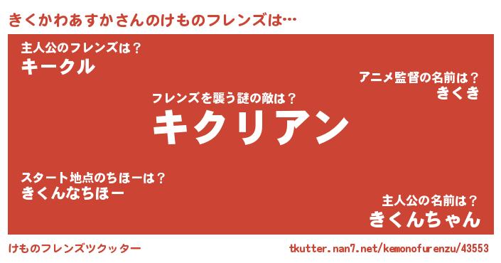 | ヘコむあだ名 | 『きくかわあすか(笑)』『きくにー』 |