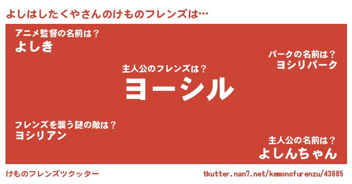 | ヘコむあだ名 | 『よしはしたくや(苦笑)』『よしっぺ』 |