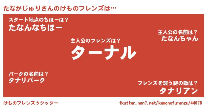 | 男性向けラノベタイトル風あだ名 | 『たなかじゅりという概念が存在しない退屈な世界 』 |