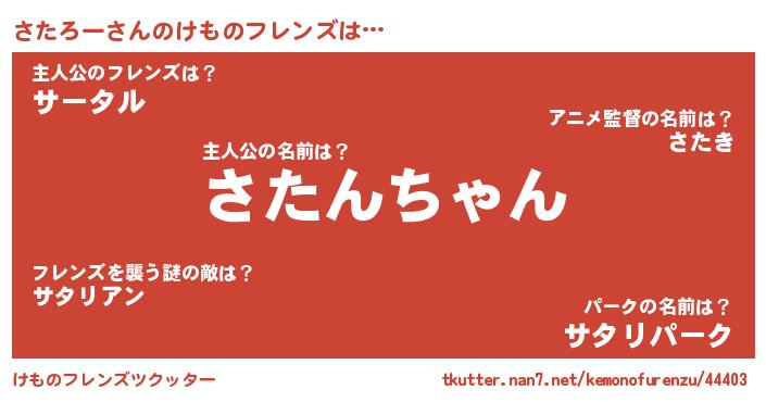 | 意味不明あだ名 | 『ペロリンさたろー』『永久保存さたろー』 |